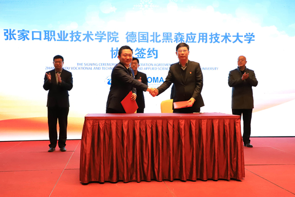 黨委書記馮印濤在講話中指出,作為河北省示范性高職院校,張職院始終圍繞黨和國家發展大局,著力提升服務國家戰略、服務區域經濟和地方經濟發展的能力。與崇禮區簽約合作,有助于我院更好發揮人才、專業、教學資源優勢,在培養專業人才、開展產學研合作、推動地方經濟發展、協助做好冬奧籌辦工作等方面探索新時代高職院校的發展之路,傾力打造中華文化傳播的“助推器”、創新人才的“孵化器”、冰雪運動拓展的“主陣地”;共建張職院崇禮分院,有利于我院以冰雪經濟、現代服務業為突破口,全面探索推進產教融合辦學新機制、新模式,推動冰雪經濟、現代服務業與行業企業深度融合、高職教育與中職教育深度融合、高校與地方創新體系深度融合,構建人才成長的“立交橋”;與德國北黑森應用技術大學簽約合作,是我院在國際化辦學方面邁出的堅實一步,也將推動我院引進國外優質職業教育資源和國際通用職業資格證書標準,促進高校、專家學者、高技能人才交流互動,創新人才培養模式,打造國際化辦學品牌;與張家口文化旅游投資集團有限公司、富龍控股有限公司在職教人才培養、服務社會等方面的合作,將全面開拓職業教育改革和企業經濟發展的新路徑,為雙方發展,提供堅實的基礎和廣闊的空間。