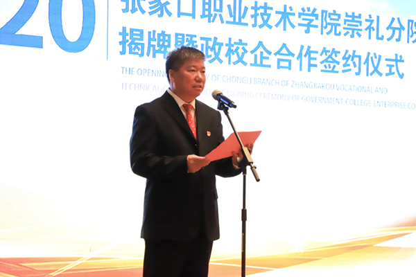 崇禮區委副書記、崇禮區人民政府區長趙贊在致辭中表示,伴隨著冬奧會籌辦,崇禮區各項基礎設施建設有了長足進步。但是從一個國家級貧困縣躍升到國際知名小鎮的過程中,也面臨著各類人才的短缺。設立張職院崇禮分院和張職院富龍實習實訓基地將推動三方在教師培養、專業拓展、學習管理、資源共享、基地建設等方面的深入合作,促進崇禮區職業教育教學水平實質提升。區委、區政府將加大投入力度,強化政策支持,為三方合作順利推進提供全面保障,打造政校企合作的成功典范,為冬奧會籌辦工作及崇禮未來發展提供有力的人才支持。
