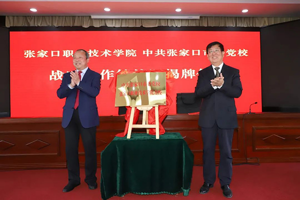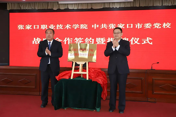 儀式上,黨委副書(shū)記、院長(zhǎng)王立軍與中共張家口市委黨校常務(wù)副校長(zhǎng)王永共同簽署張家口職業(yè)技術(shù)學(xué)院、中共張家口市委黨校戰(zhàn)略合作協(xié)議。