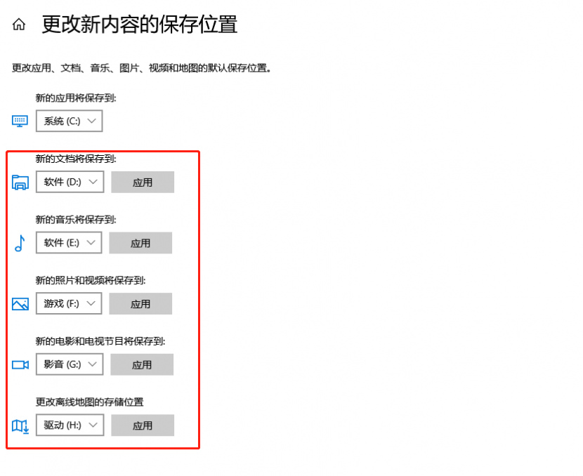 所以我們必須要更改文件的存儲位置,右鍵桌面,選擇【顯示設置】,點擊【存儲】,打開【更改新內容的保存位置】,將這些文件夾分散保存在DEFG盤,達到均衡的效果。