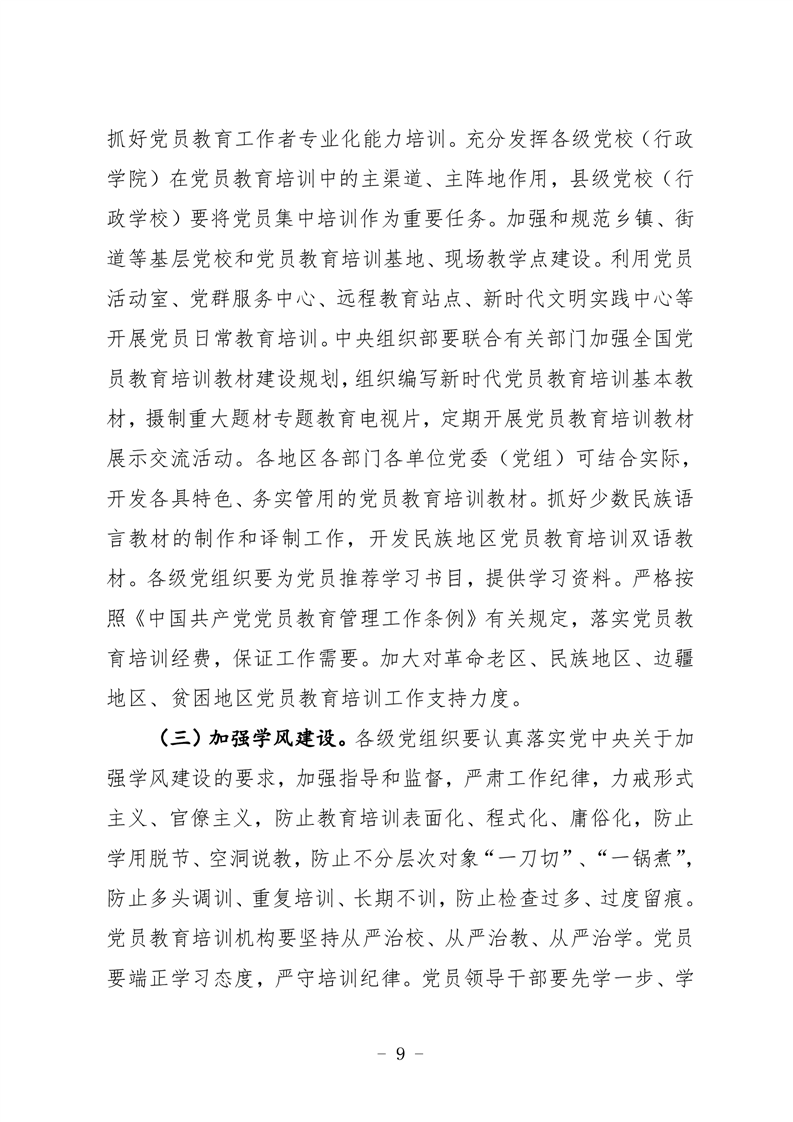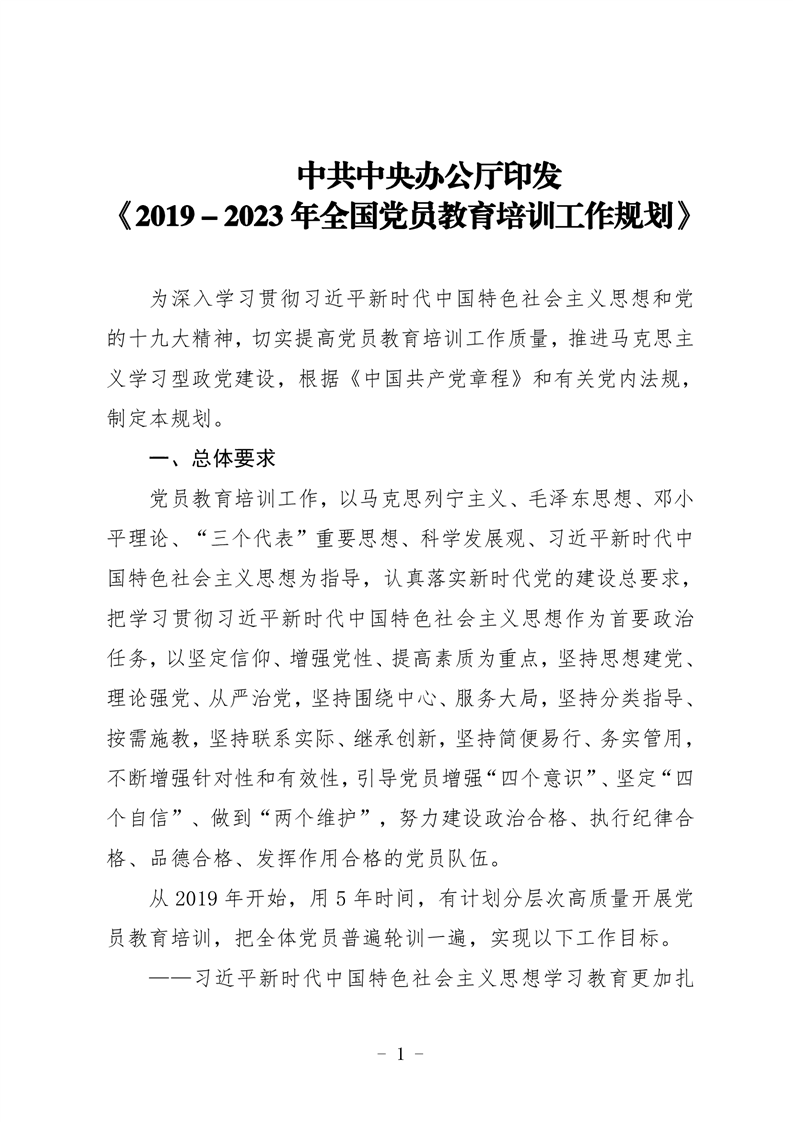 中共中央辦公廳印發《2019-2023年全國黨員教育培訓工作規劃》