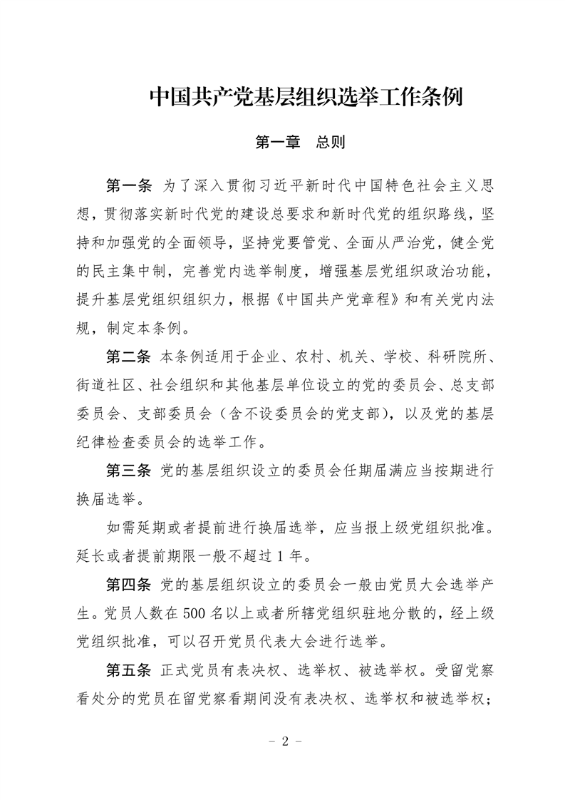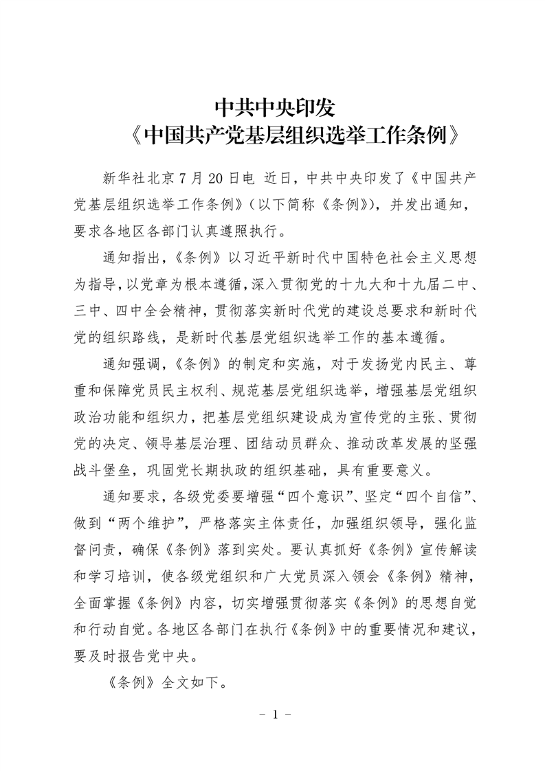中共中央印發(fā)《中國共產(chǎn)黨基層組織選舉工作條例》